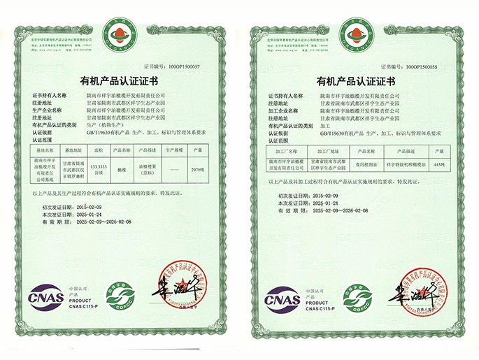 有機產(chǎn)品認證證書