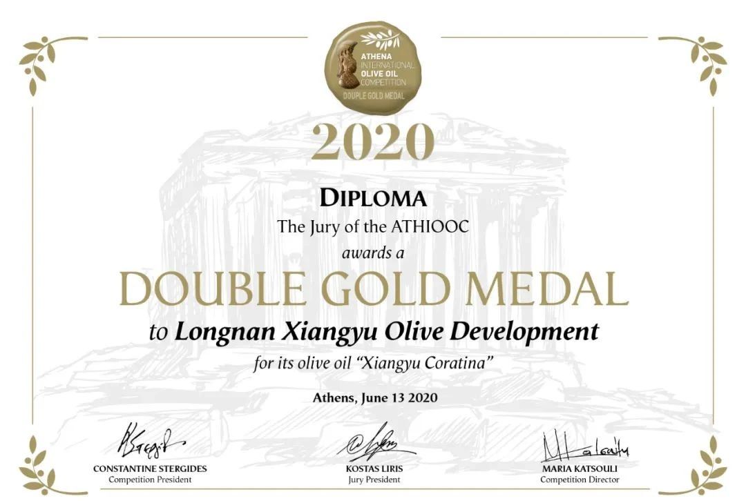 2020年在希臘國(guó)際橄欖油大賽中,隴南祥宇橄欖油又從來自全球430份橄欖油樣品中一舉奪魁,