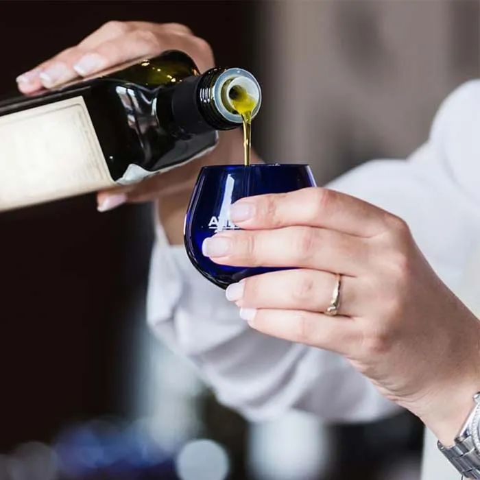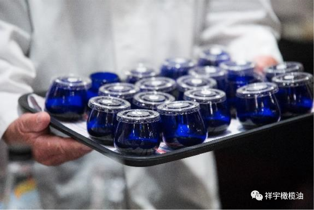 采用藍(lán)色郁金香型橄欖油品鑒專用杯,
